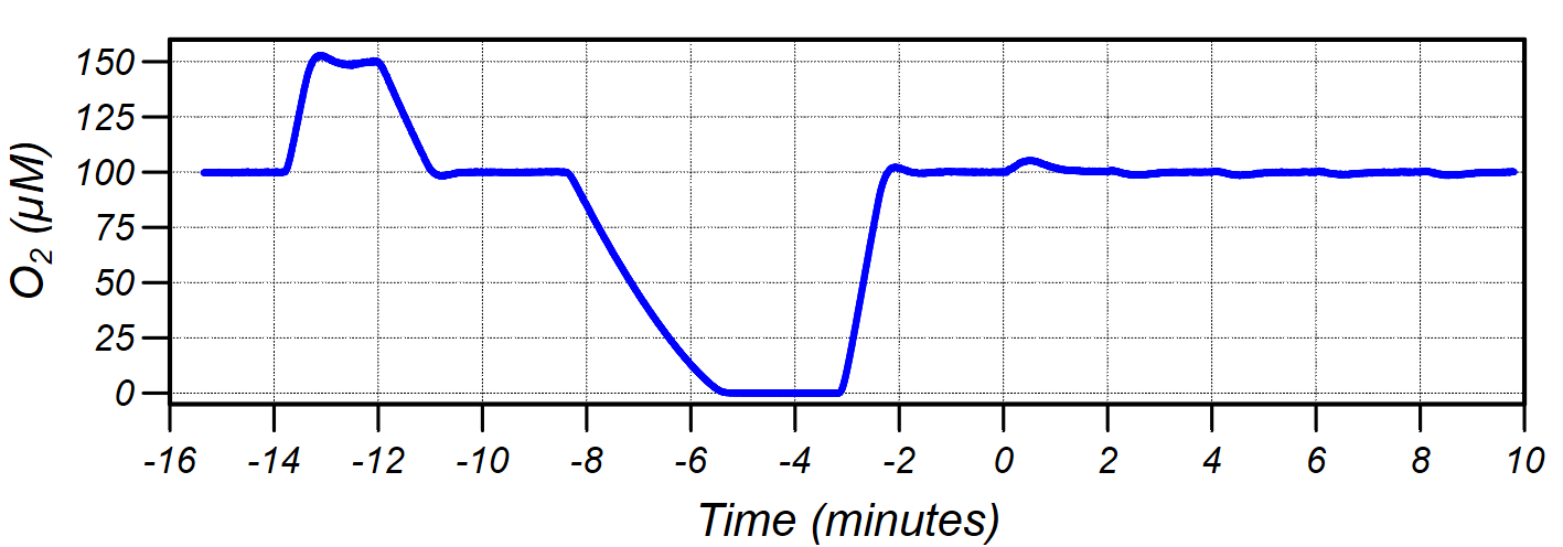 The oxygen tension in the stirred cell suspension is precision controlled by exchange of oxygen across an oxygen-permeable membrane using a computerized gas blended to mix oxygen nitrogen and carbon dioxide. allowing finger-tip control of the oxygen tension. The oxygen tension can be held at any value from anoxia to hyperoxia with continuous measurement of oxygen consumption.