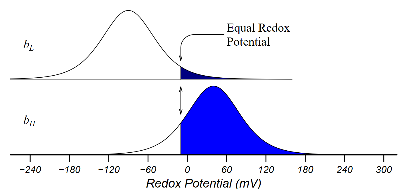 The two b-hemes straddle the membrane and their oxidation state is sensitive to the membrane potential so that they are an intrinsic sensor of the membrane potential.